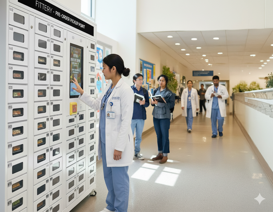 Imagine your staff with 24/7 access to hot, nutritious meals in an instant. No setup costs, no kitchen required, no extra staffing - simply provide us 1 electrical socket, and we'll handle everything.