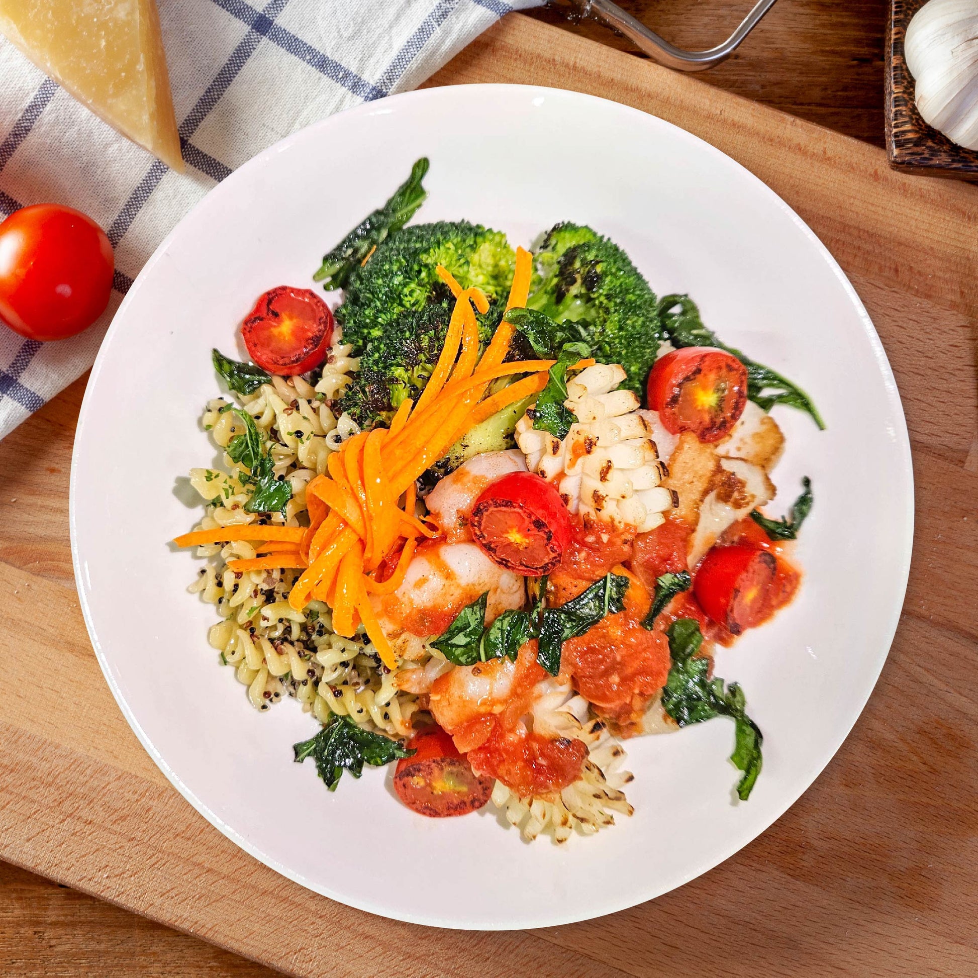 Mix Seafood Quinoa Pasta W/ Sautee Vegetables And Marinara Sauce