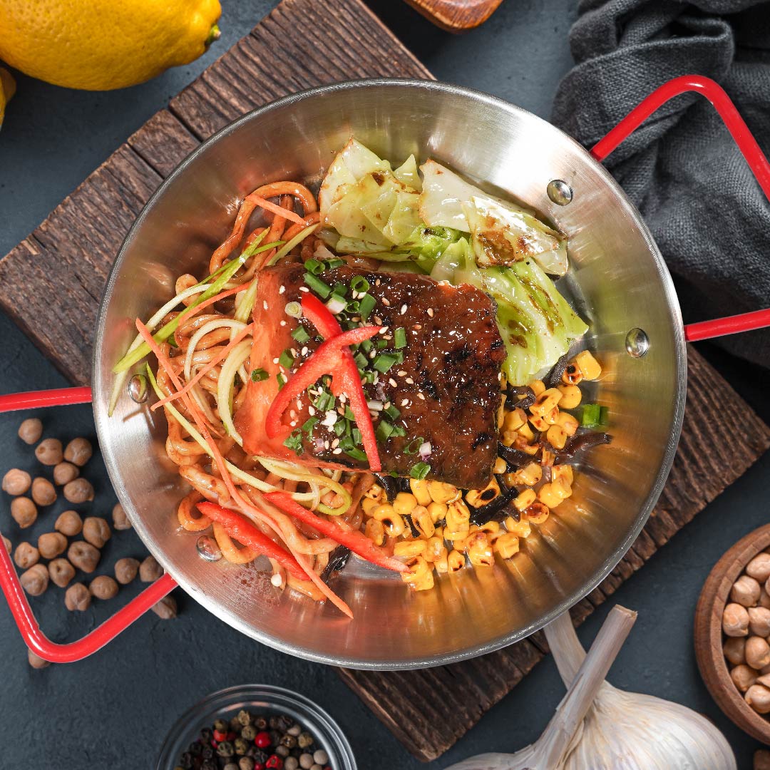 Sweet Miso Salmon W/ Mix Vegetables And Japanese Yakisoba Style Udon