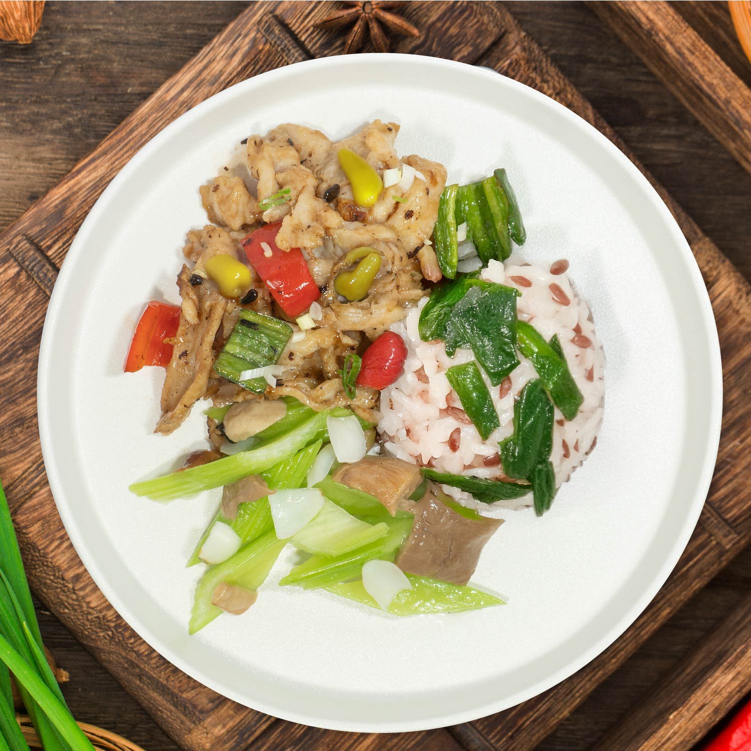 Shanghainese Chilli Bell Pepper Chicken W/ Seasonal Vegetables And Shanghai Style Vegetable Mix Grains