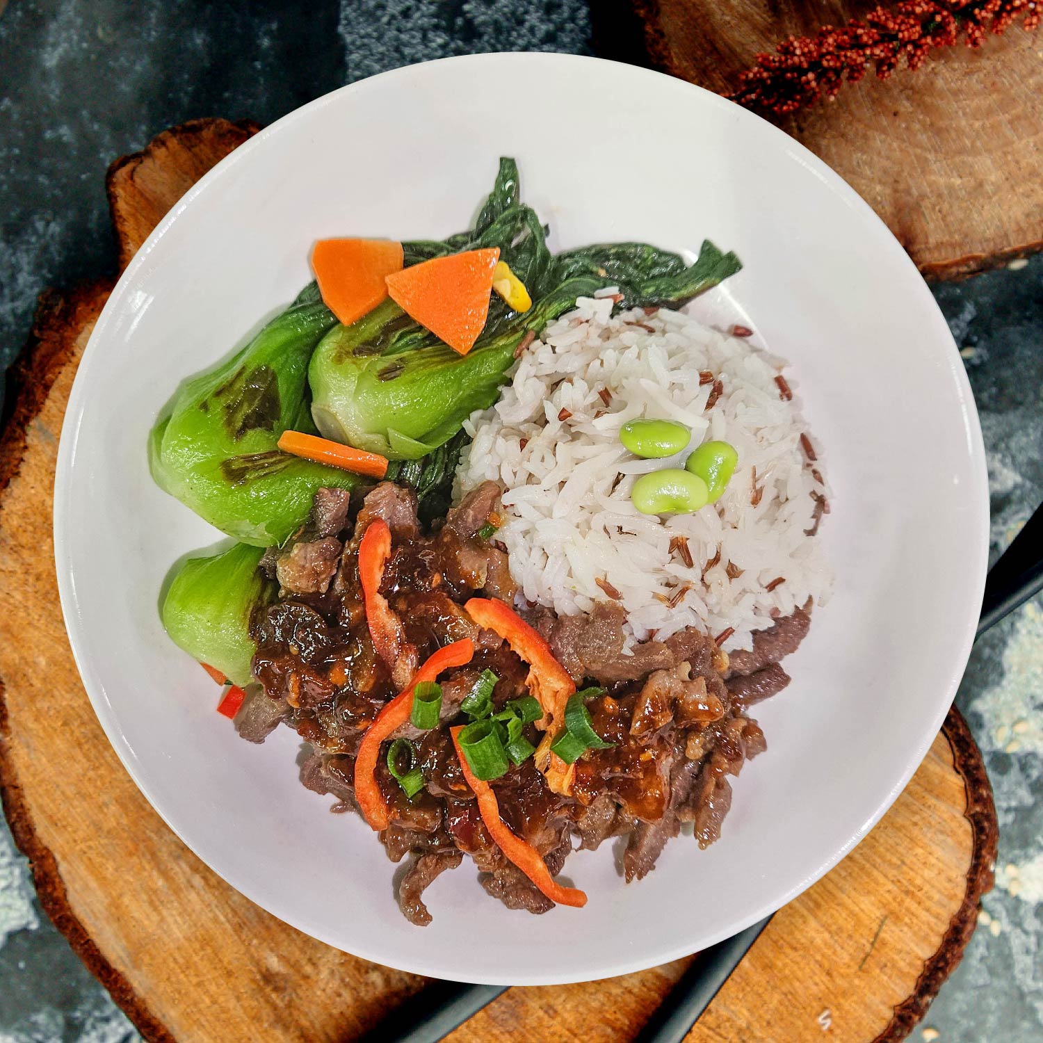Satay Beef W/ Seasonal Vegetables And Edamame Mix Grain