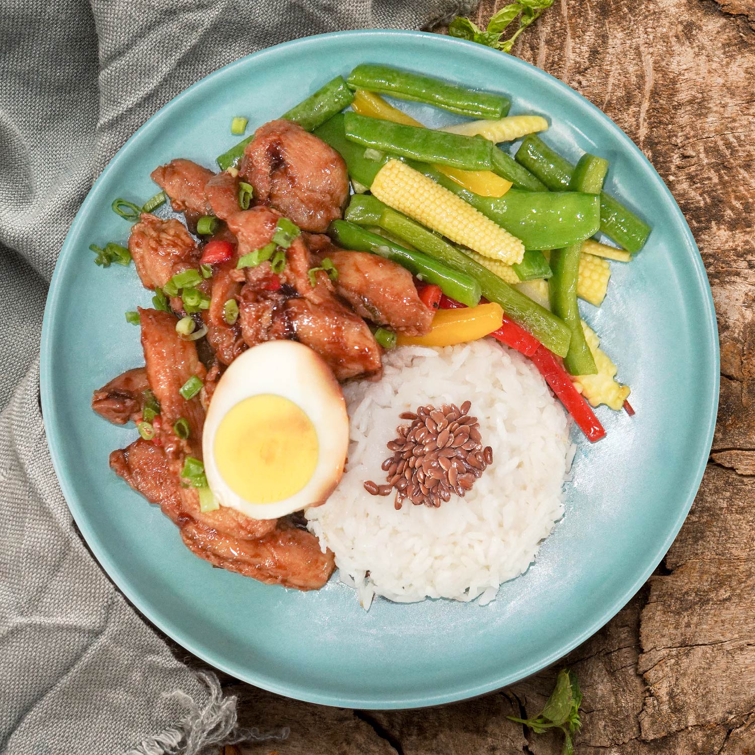 Shandong Chicken W/ Mushroom, Soy-Marinated Egg, Asian Greens And Flaxseed Rice