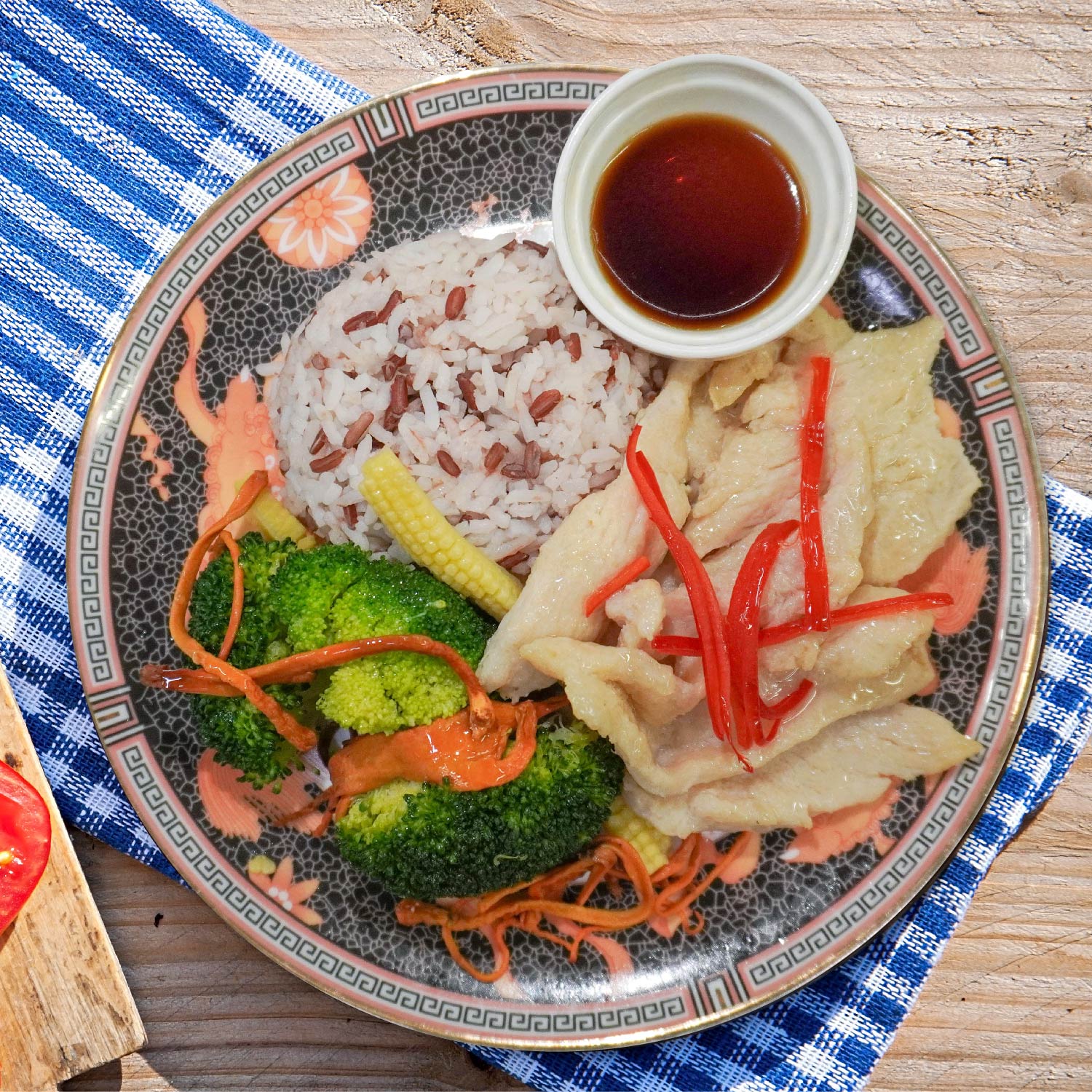 Salt Baked Chicken W/ Chinese Vegetables, Truffle Mix Grains And Sweet Soy Sauce