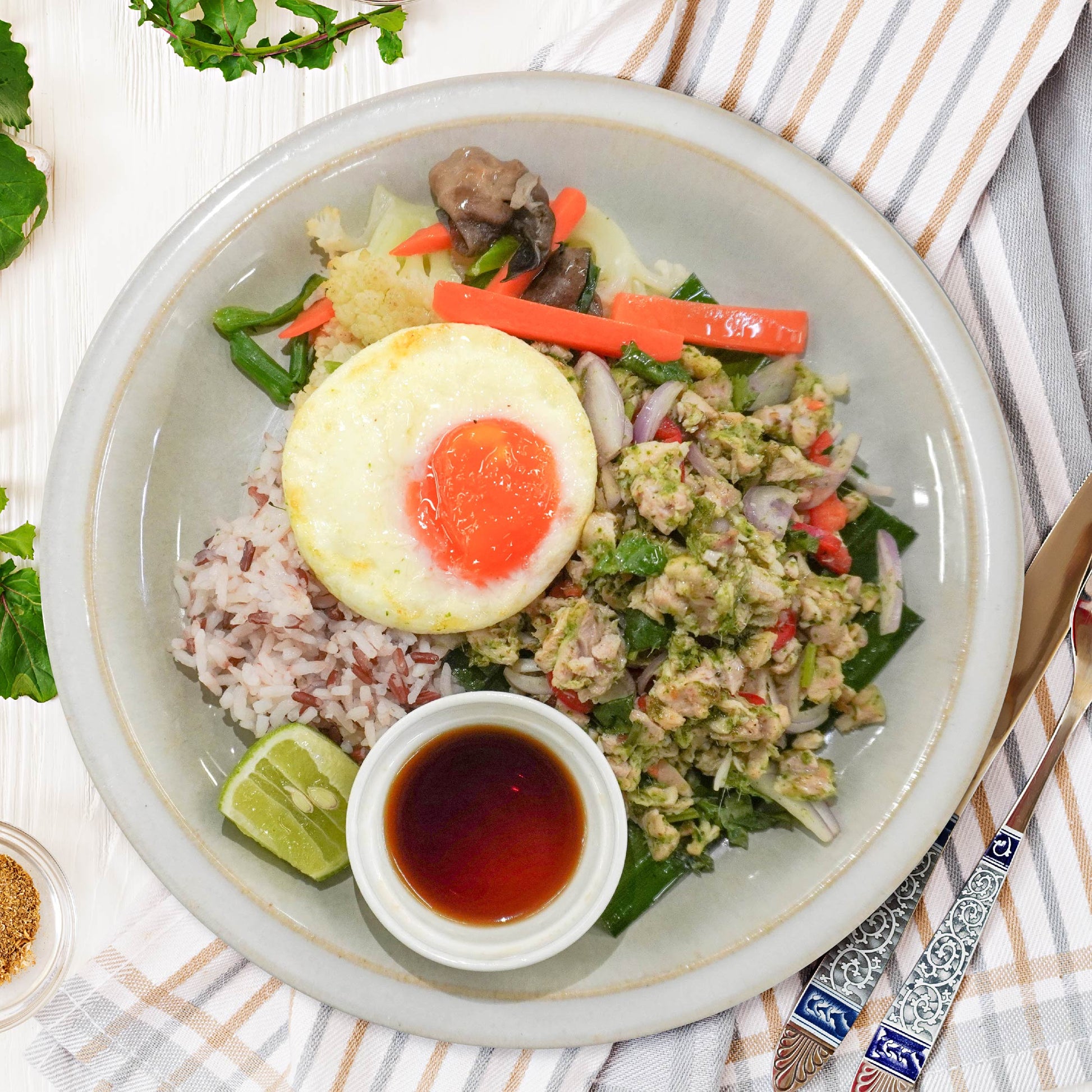 Thai Basil Chicken Mix Grain Rice W/ Baked Egg
