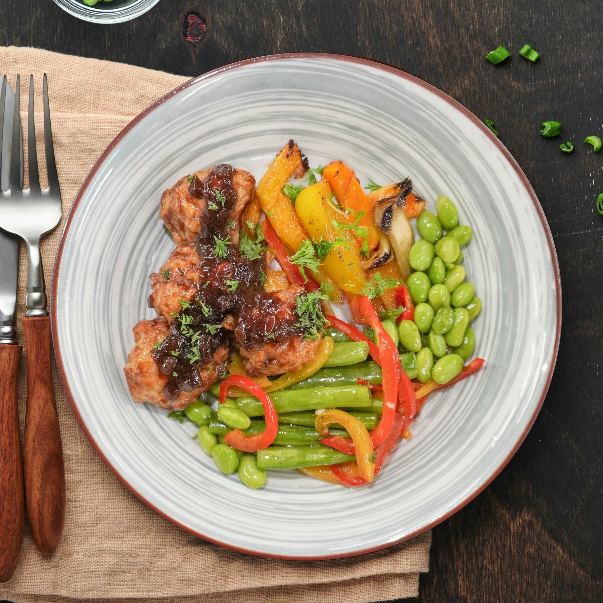 Italian Meatballs W/ Seasonal Greens And Red Wine Balsamic Reduction