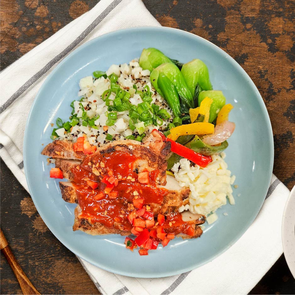 Experience the perfect balance of sweet and tangy flavors with a touch of chilli in our Kung Pao Chicken with Cauliflower Rice. We use grilled chicken to remove all excess fat before pairing this protein with a colorful mix of Chinese vegetables and Cauliflower rice. Extra Mozzarella Cheese is used to boost the fat content and together make this dish a very choice for those that like a bit of heat to their meals.