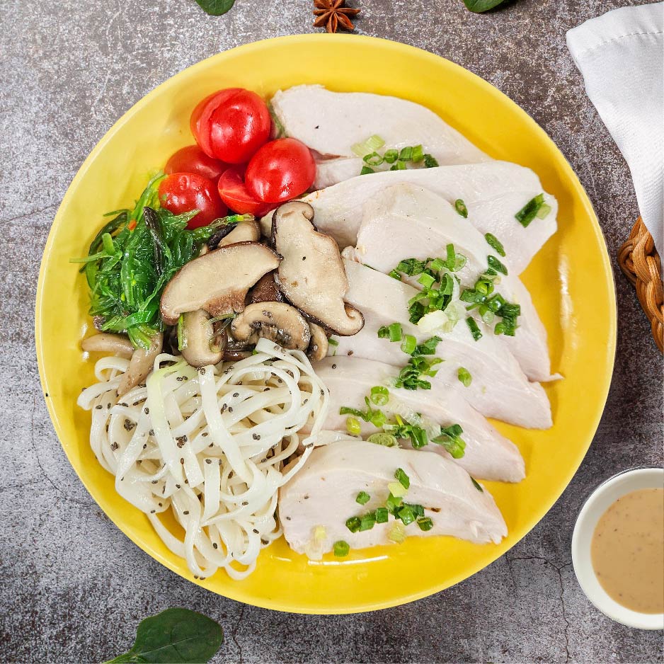 Sometimes when the only thing on your mind is a nice salad, this Japanese Sesame Chicken with Chinese Noodles Salad is a no brainer. Our slow cooked chicken breast is perfectly juicy and low in fat, while seaweed and sesame are loaded with vitamins and minerals like iodine and magnesium that support muscle function and recovery. This delicious and tasty meal is perfect for a hot summer’s day!