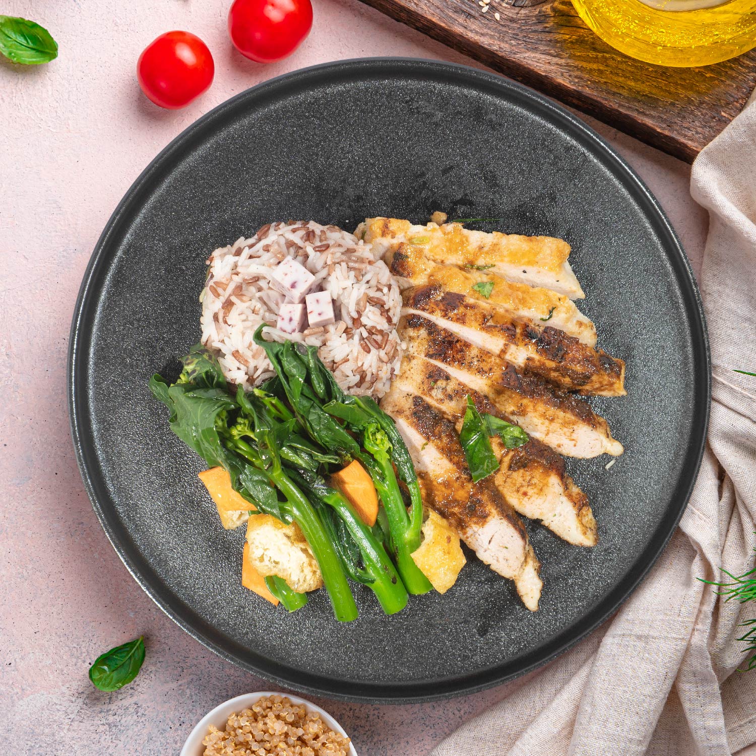 馬來西亞三巴瘦肉配蒸青菜和香芋什錦飯
