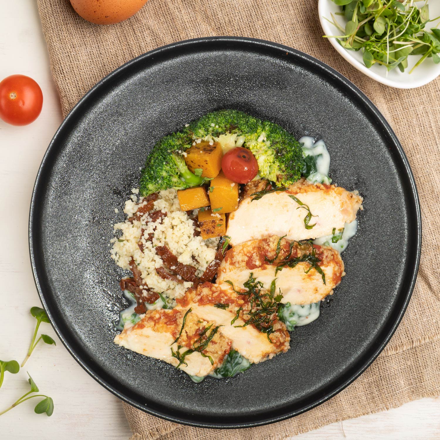 慢煮托斯卡納風味雞胸肉配烤蔬菜和南瓜庫斯古斯